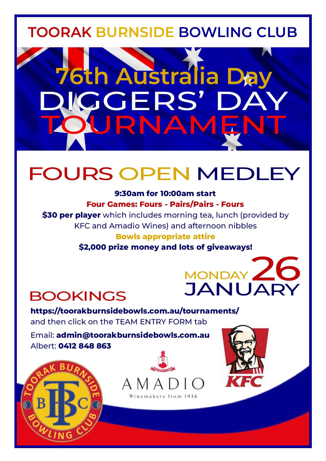 We hold one major tournament each year – Diggers’ Day – on Australia Day. It is open to our members and members from other clubs.